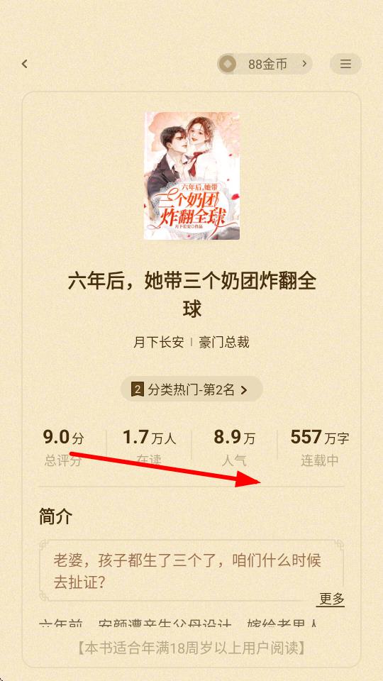 3、在小说详情页,点击阅读按钮,进入小说阅读界面。