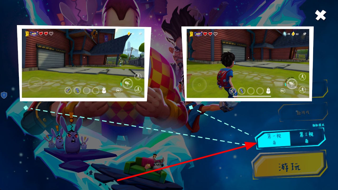 1、选择视角,在第一视角和第三视角中选择,切换不同视角探索城堡,丰富视角体验。