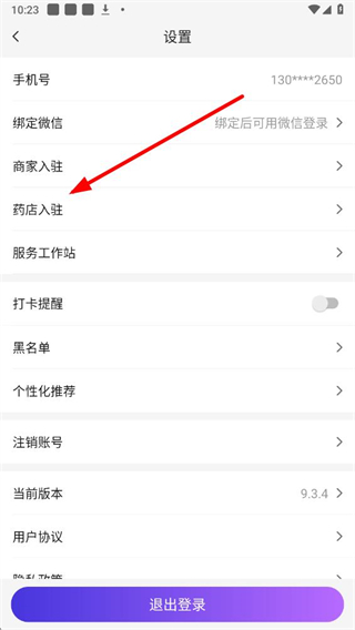 3、在设置界面里,选择药店入驻选项,进入药店入驻信息填写页面。