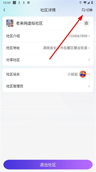 3、在社区详情页面,找到右上角的切换按钮并点击,弹出包含其他社区选项的选择菜单。