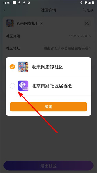 4、在社区选择菜单中,选中目标社区,点击确定按钮即可完成社区信息的切换。