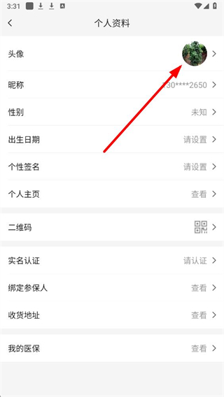 3、在个人资料界面,点击头像选项,唤起头像更换的操作菜单。