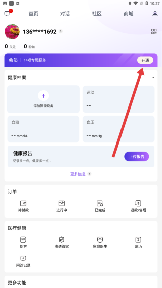 1、在我的主页中可以点击开通按钮,进入开通会员页面。