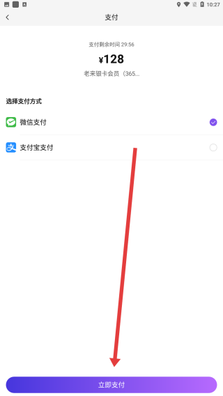 3、跳转到支付页面中,点击立即支付按钮即可完成会员卡的开通。