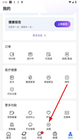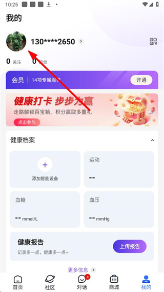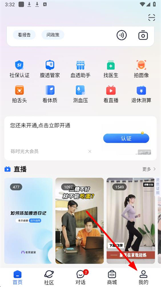 1、进入老来健康app后,点击首页底部我的选项,进入我的个人页面。