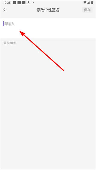 4、在输入框中填写新的个性签名,填写完成后点击右上角保存即可完成修改。