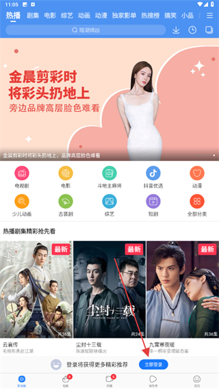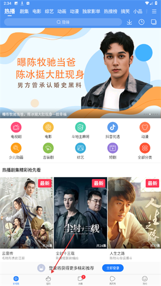 1、打开百搜视频的应用,点击下方立即登录的按钮。