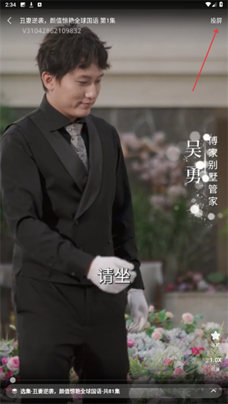 3、进入播放的页面内,点击右上方投屏的功能按钮。