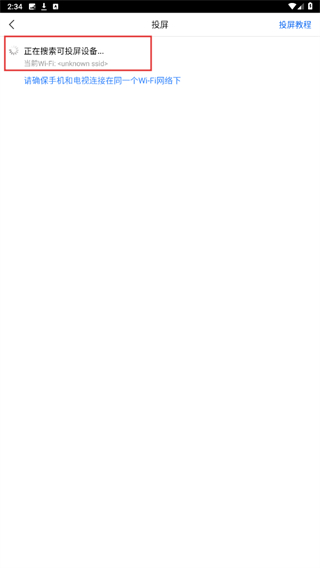 4、在投屏的页面内,呈现正在搜索设备的提示,需耐心等待。