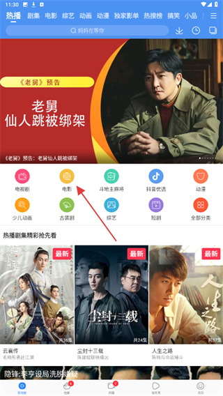 1、打开百搜视频的App,进入首页点击电影的标签。
