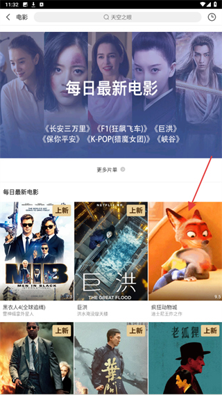 2、在电影的页面内,选择并点击要播放的电影封面。