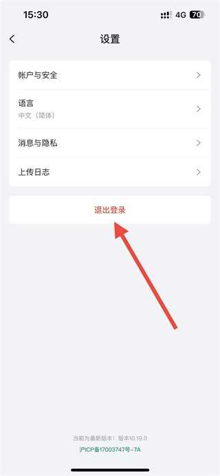 3、在设置页面,找到退出登录按钮并点击,弹出确认弹窗。