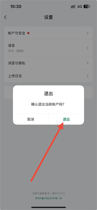 4、在确认弹窗中,点击退出按钮,即可完成账号退出操作。