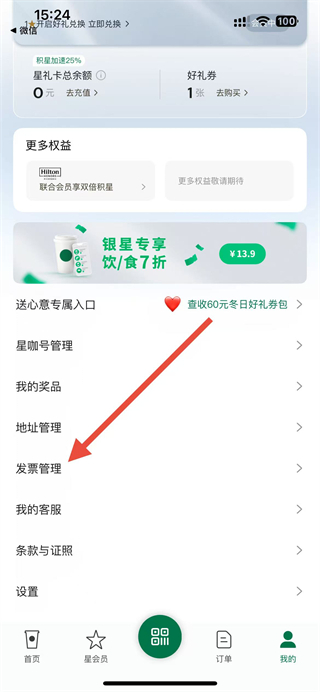 2、在我的页面中,找到发票管理选项并点击,进入发票界面。