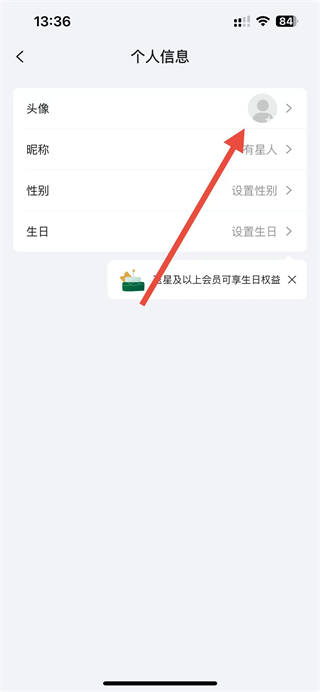 2、在个人信息页面中,选择头像选项,进入头像修改界面。