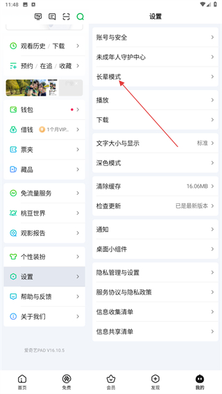 3、进入设置的页面内,点击长辈模式的功能按钮。