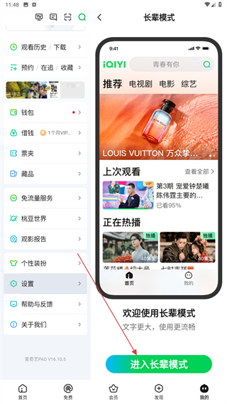 4、进入长辈模式的页面内,点击下方进入长辈模式即可。