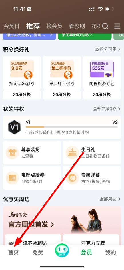 1、打开爱奇艺APP,点击底部导航栏中的首页进入首页界面。