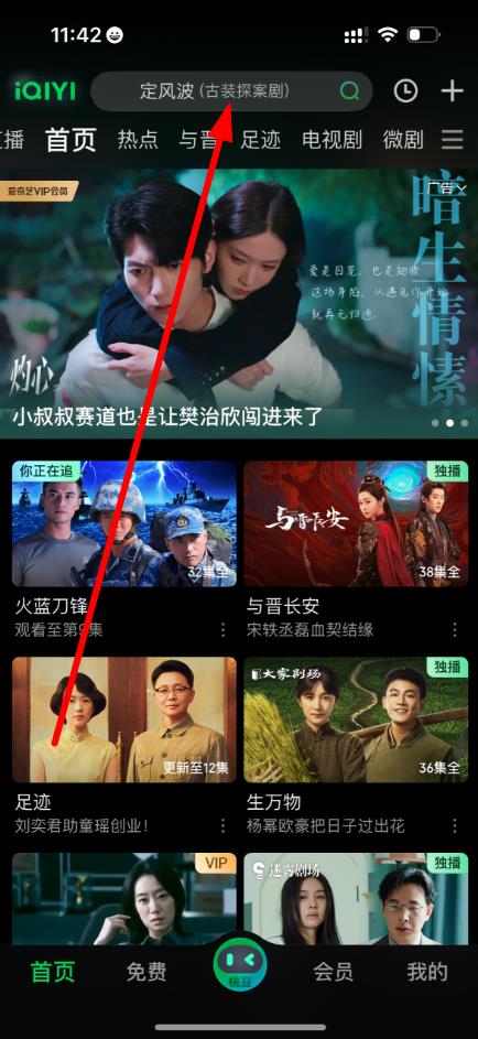 2、在首页上方中间位置,找到搜索框并点击进入搜索页面。