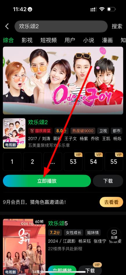 4、点击搜索结果中对应的电视剧条目,进入该电视剧详情页,点击立即播放即可观看。