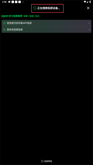 3、进入投屏的页面内,显示正在搜索的提示,需耐心等待。