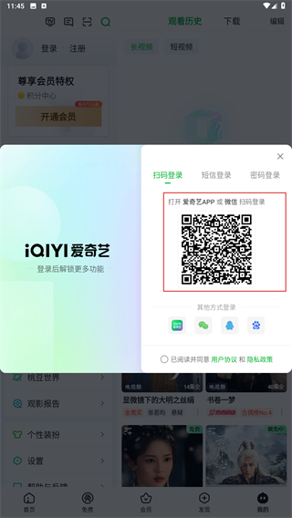 3、当页面呈现二维码时,可使用手机进行扫码登录。