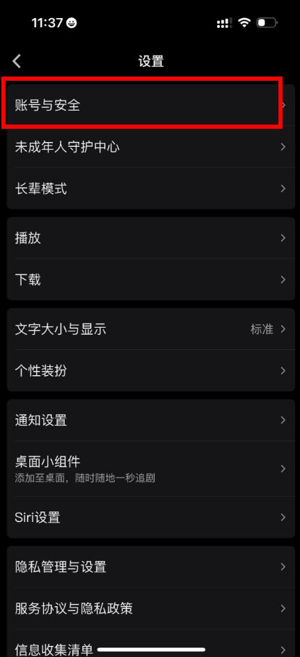 3、在设置页面里,点击账号与安全进入账号与安全界面。