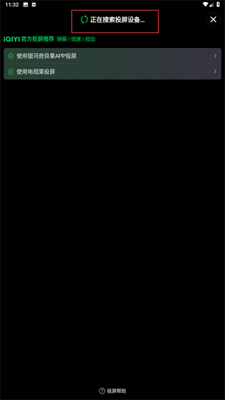 4、点击后,软件会呈现正在搜索投屏设备的提示。