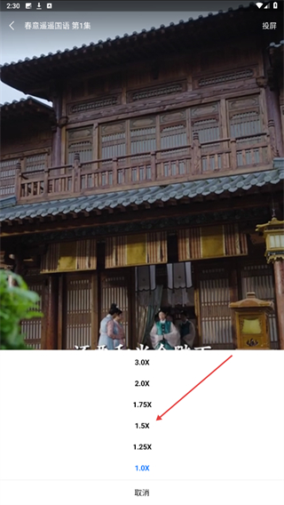 4、在下方弹出的页面内,选择并点击1.5x的即可。