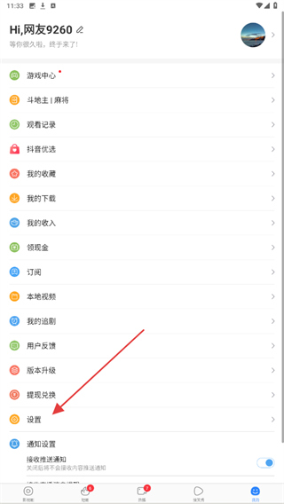 1、在百搜视频主界面点击右下角我的按钮,进入个人中心页面。