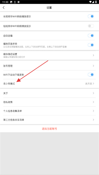 3、在设置页面里找到青少年模式选项,点击进入模式配置界面。