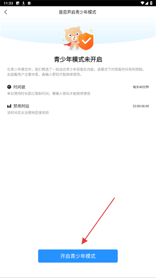 4、在对应界面点击开启青少年模式按钮,完成该模式的启用操作。