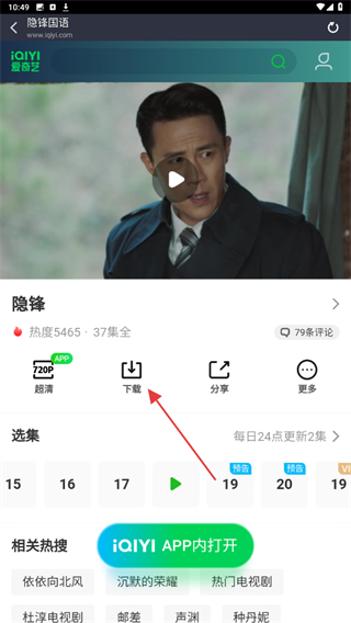 3、在播放的页面内,点击下方下载的按钮即可开始。