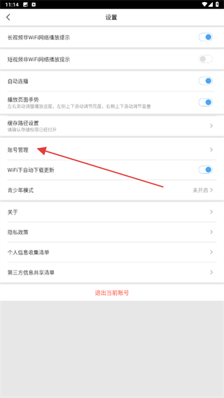 3、进入设置的界面内,点击账号管理的功能按钮。