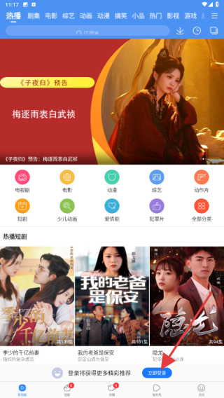 1、打开百度影视大全APP,一进入首页会弹出立即登录的按钮,点击即可。
