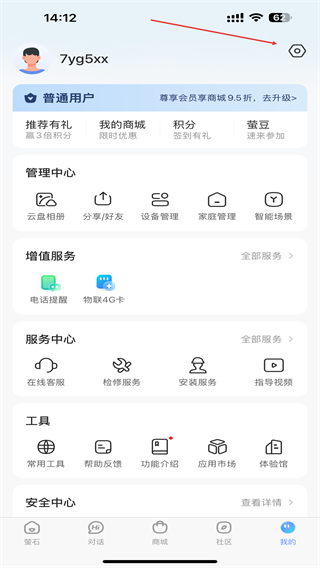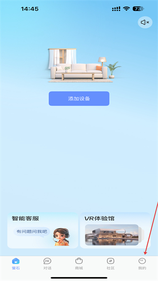1、打开萤石云视频App,点击底部导航栏最右侧的我的,进入个人中心页面。