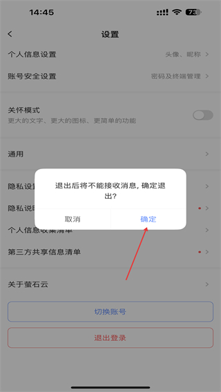 4、当页面弹出确认弹窗后,点击确定即可完成账号退出。