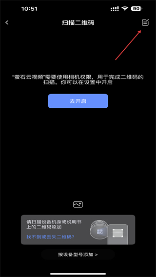 2、进入扫描二维码的页面内,点击右上角的按钮。
