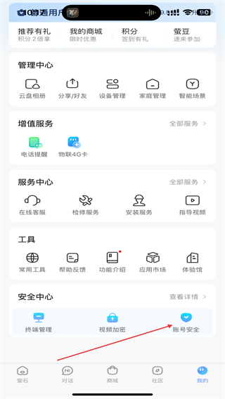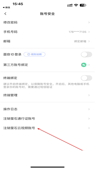 4、进入账号安全的页面内,点击下方注销萤石云视频账号。