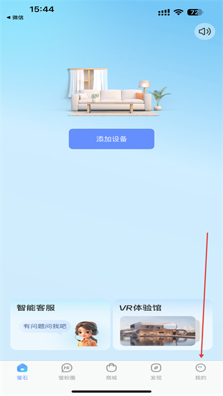 1、打开萤石云视频APP,在首页右下角点击我的图标。