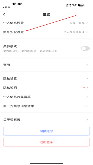 3、在设置的界面内,点击账号安全设置的功能按钮。