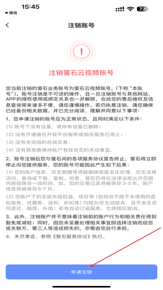 5、仔细阅读注销需知后,点击申请注销的功能按钮即可。