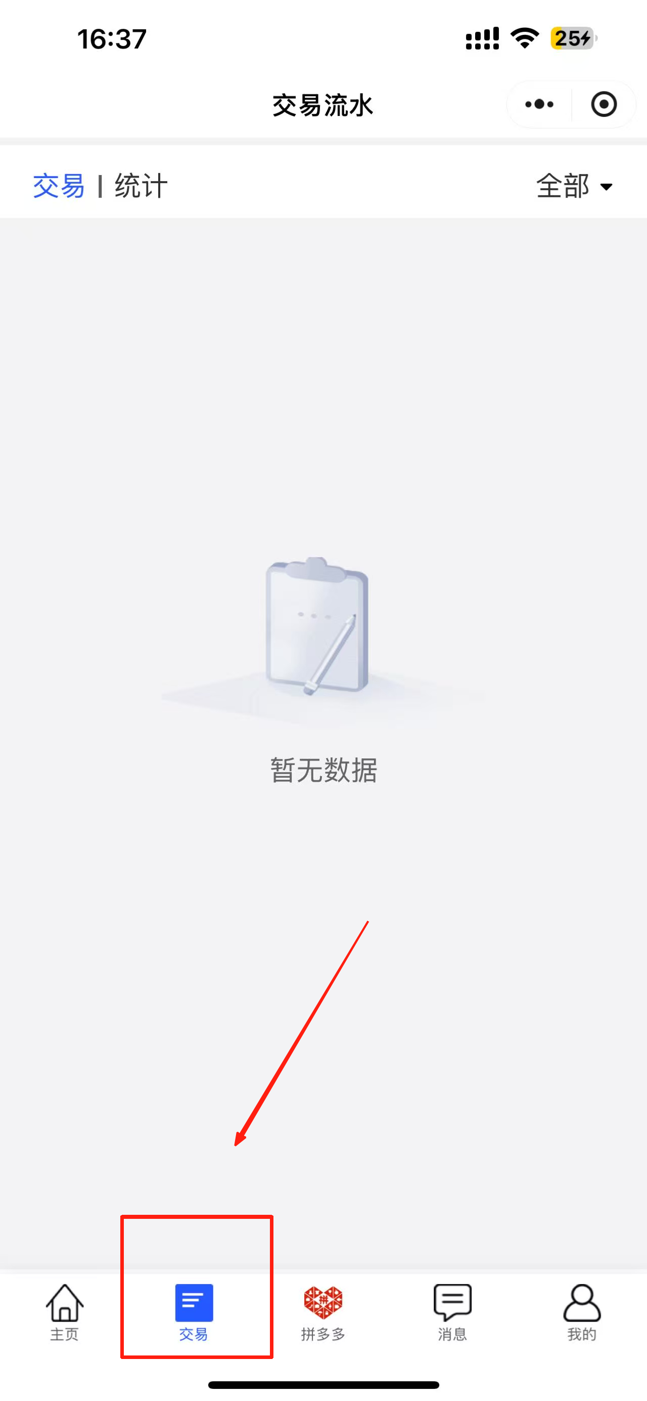 4、查看交易流水。点击“交易”标签,查看房屋管理的交易记录和统计信息。