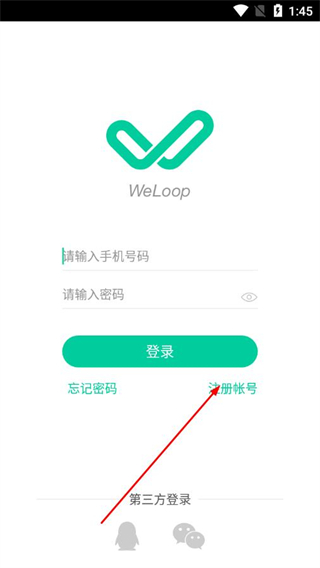 1、打开唯乐APP,在登录页面点击注册帐号选项。
