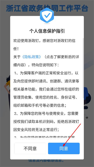 1、阅读隐私政策后,点击个人信息保护指引弹窗中的同意,进入激活账号页面。