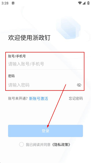 3、在登录页面,填写账号/手机号和密码,点击登录按钮完成登录。