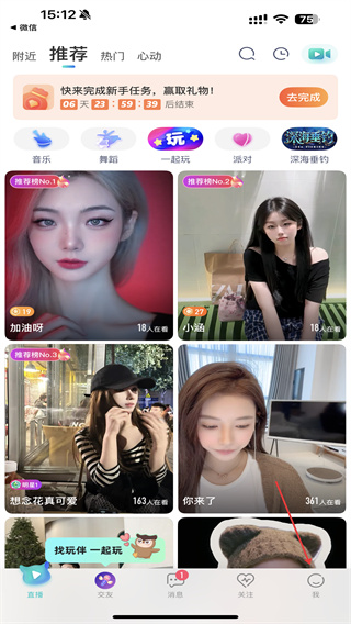 「附近广场」轻松查看附近的人动态、直播,新增喜好标签,遇见兴趣相投的ta;