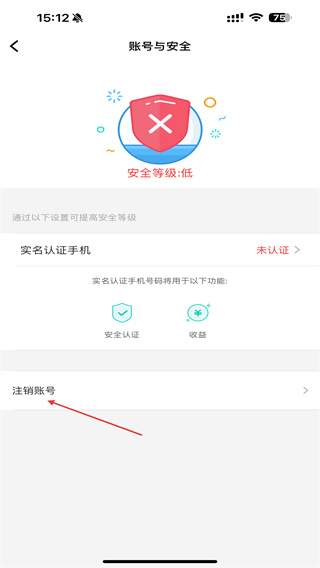 4、在账号与安全的界面内,点击下方注销账号的按钮。
