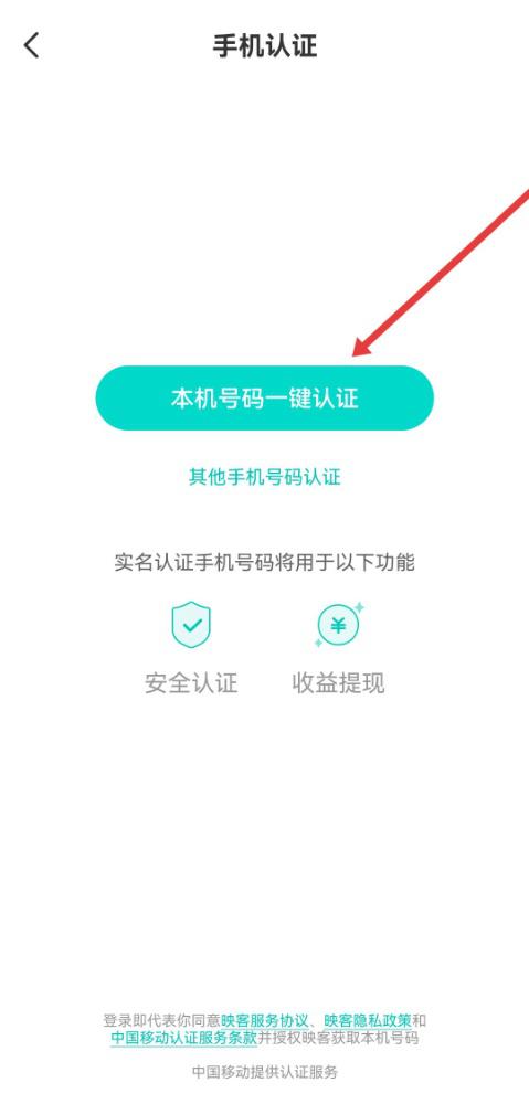 4、在手机认证页面会显示本机的部分手机号码,点击本机号码一键认证按钮,即可完成手机号的实名认证操作。