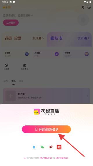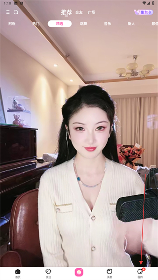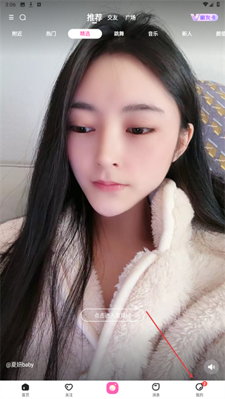 1、打开花椒直播主界面,点击底部的我的图标进入个人页面。